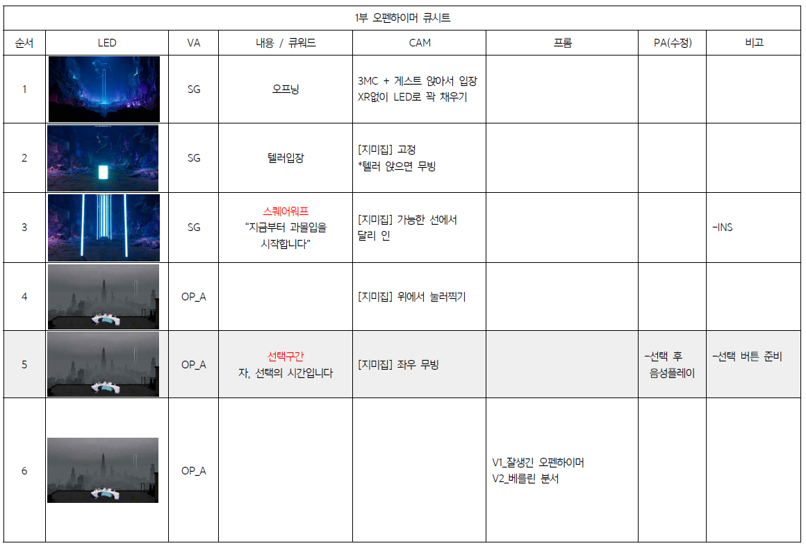I designed a new cue sheet format tailored for XR technicians, camera operators, lighting crews, and directing staff.